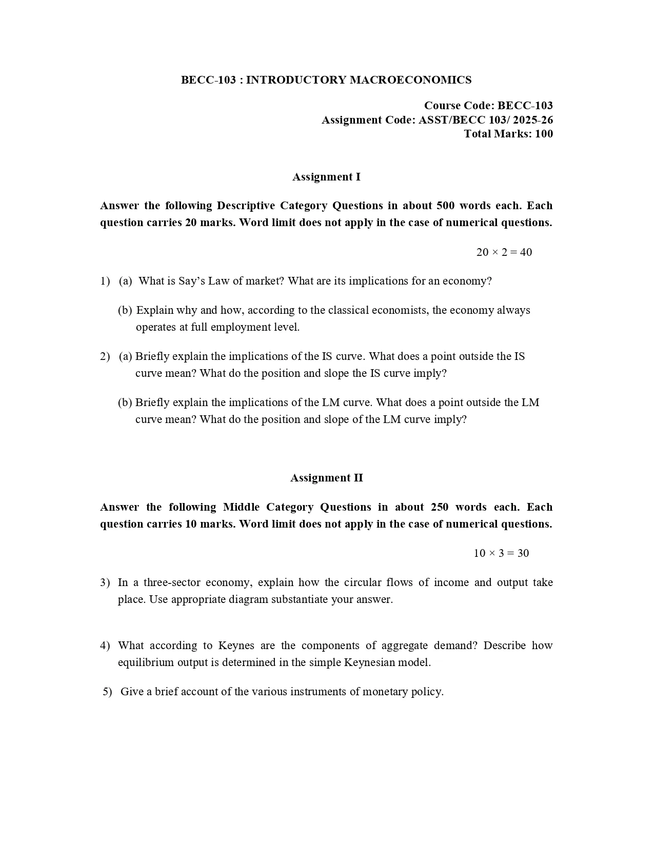 IGNOU BECC-103 Solved Assignment 2025-26 PDF | Introductory Macroeconomics