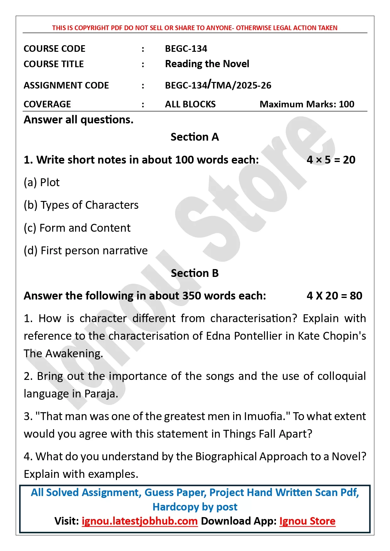 IGNOU BEGC-134 Solved Assignment 2025-26 PDF | Reading the Novel