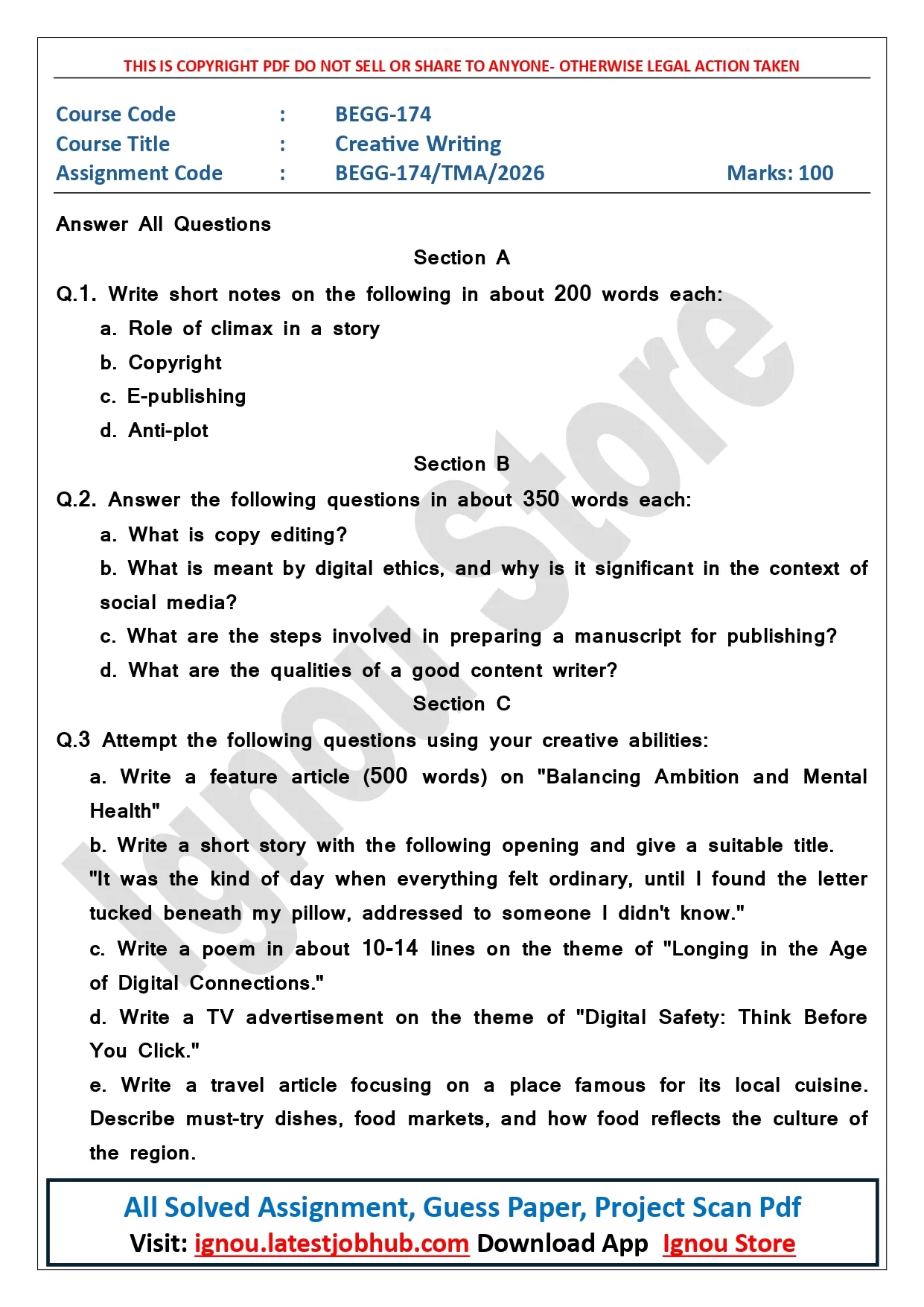 IGNOU BEGG-174 Solved Assignment 2025-26 PDF | Creative Writing