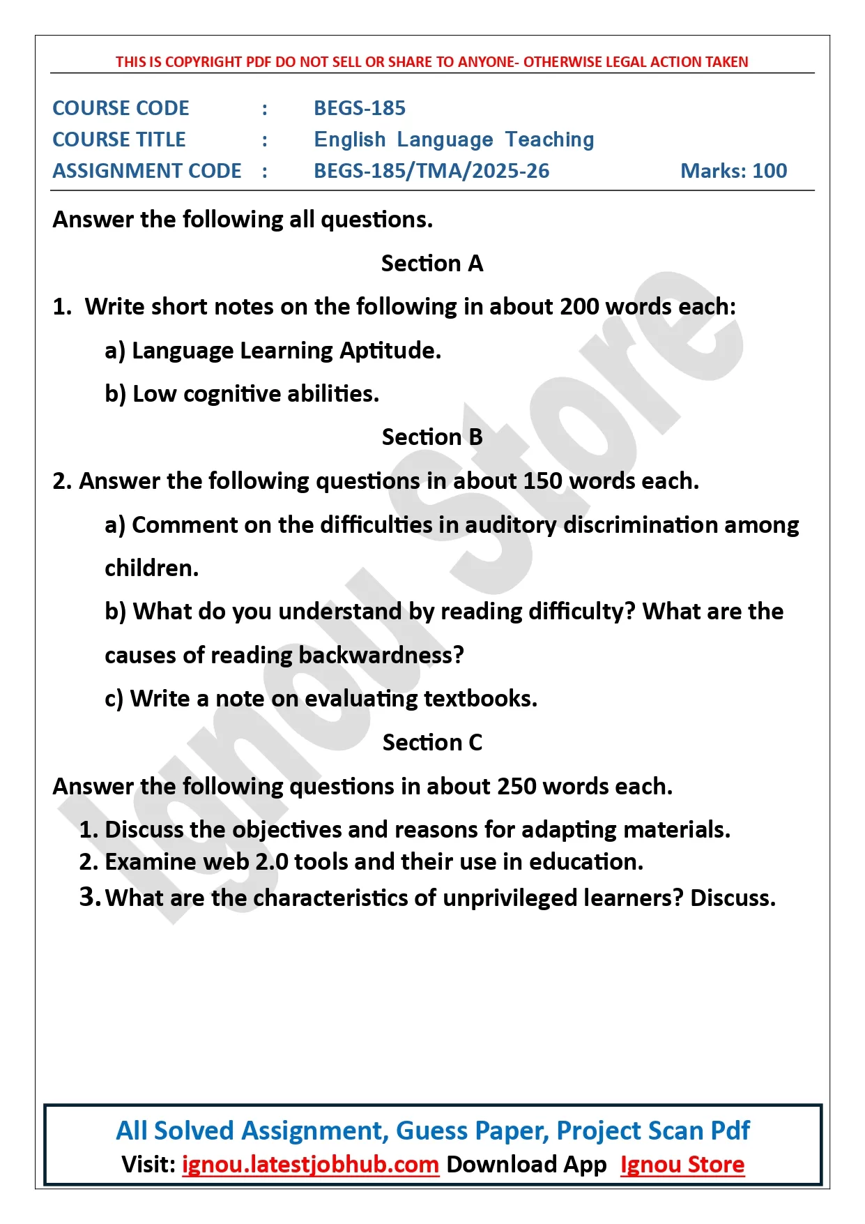 IGNOU BEGS-185 Solved Assignment 2025-26 PDF | English Language Teaching