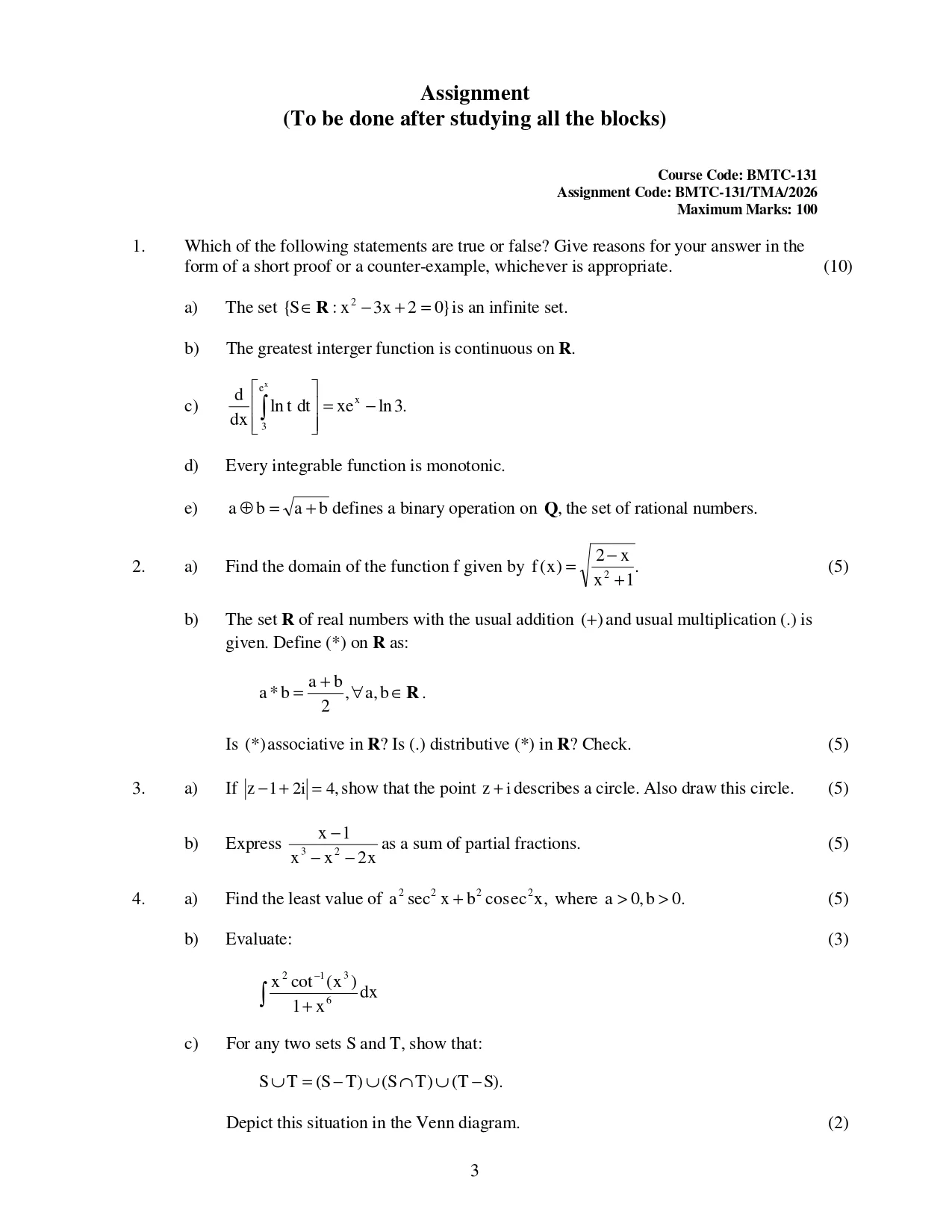 IGNOU BMTC-131 Solved Assignment 2025-26 PDF | Calculus