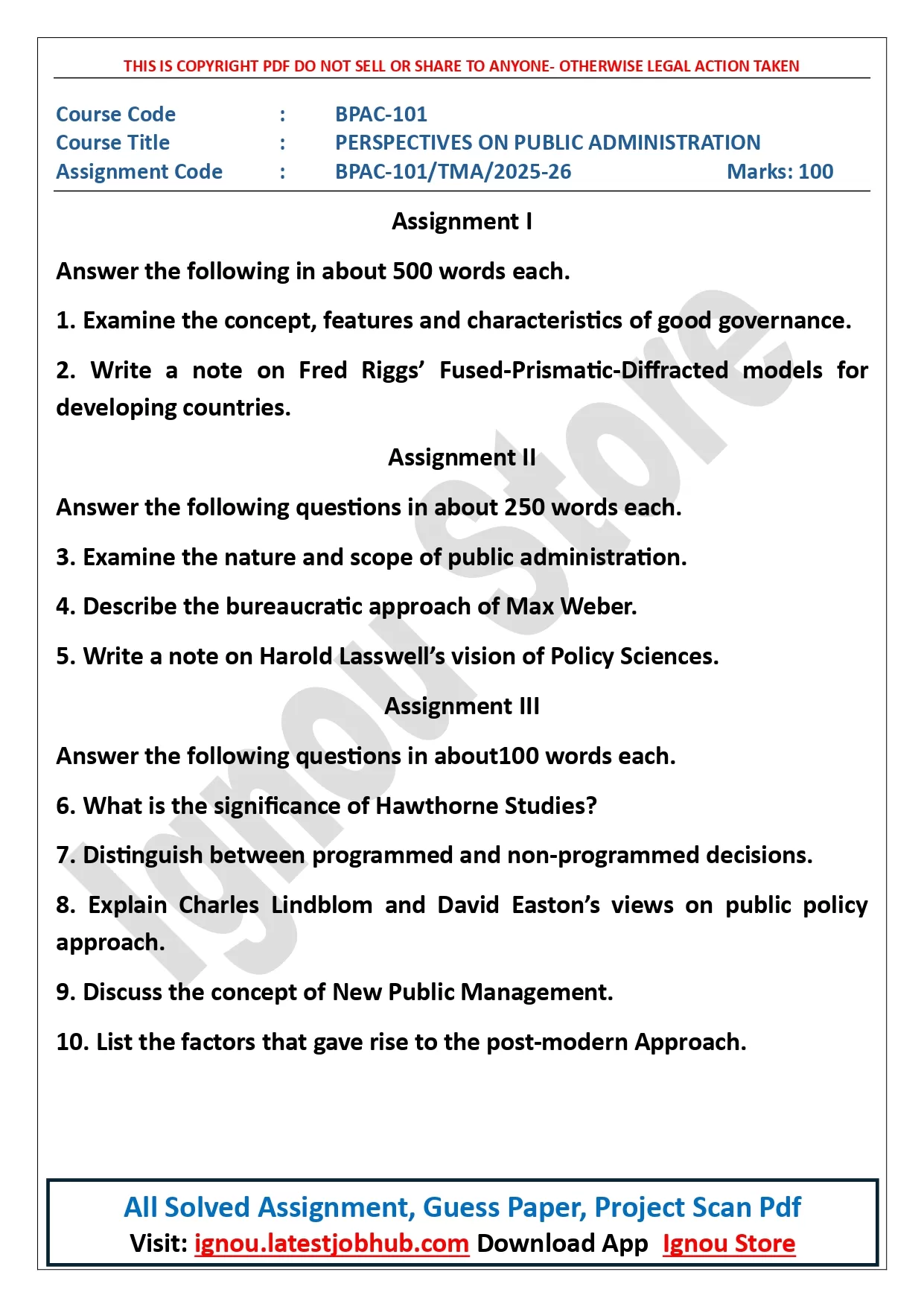 IGNOU BPAC-101 Solved Assignment 2025-26 PDF | Perspectives on Public Administration