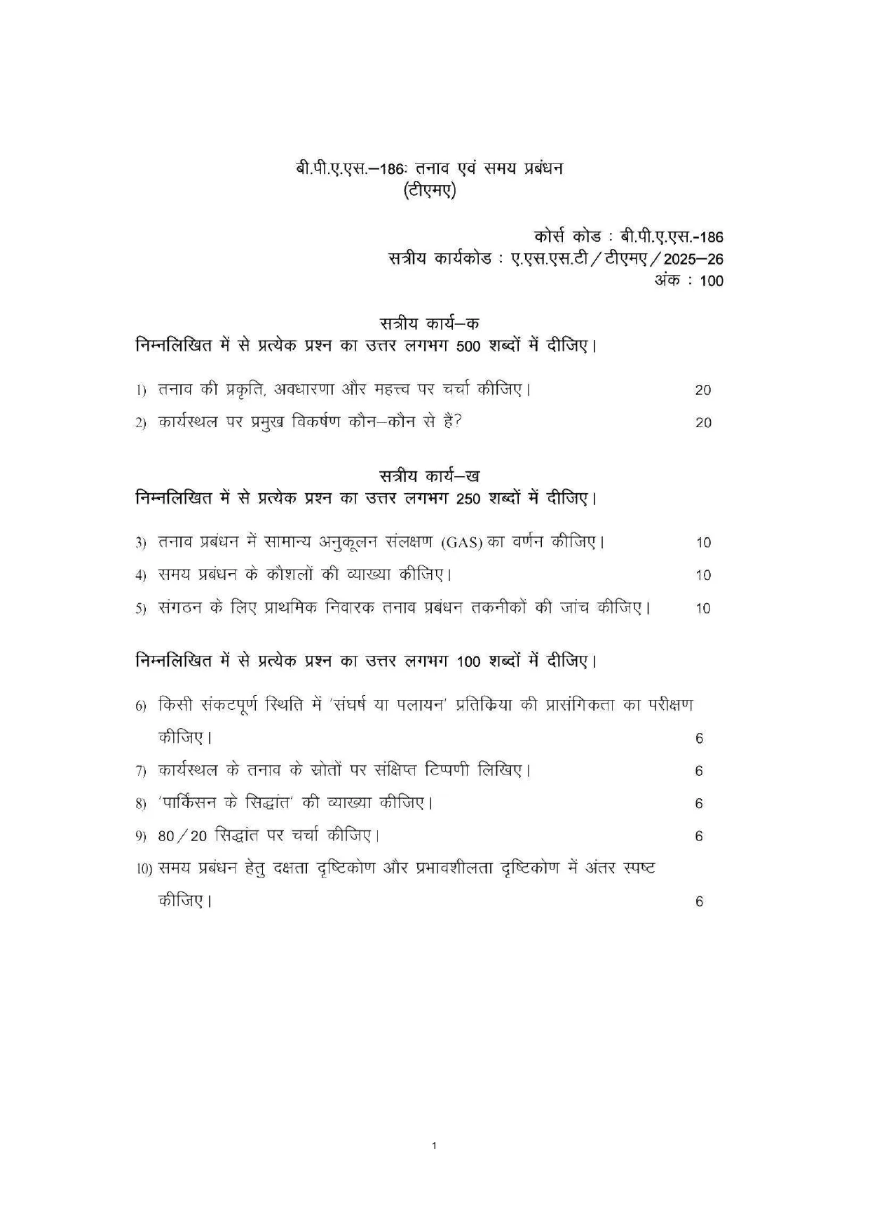 IGNOU BPAS-186 Solved Assignment 2025-26 PDF | तनाव एवं समय प्रबंधन