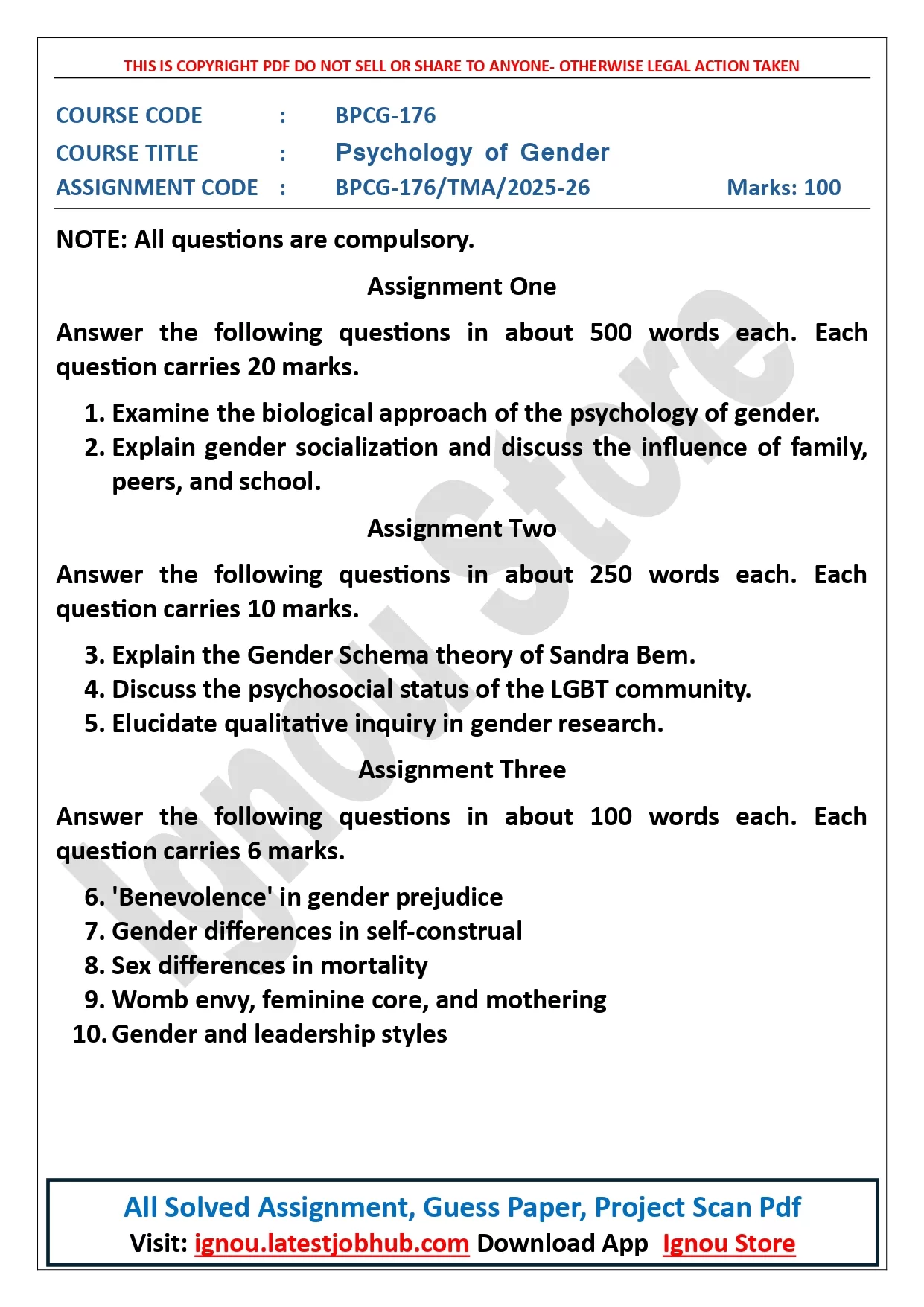 IGNOU BPCG-176 Solved Assignment 2025-26 PDF | Psychology of Gender
