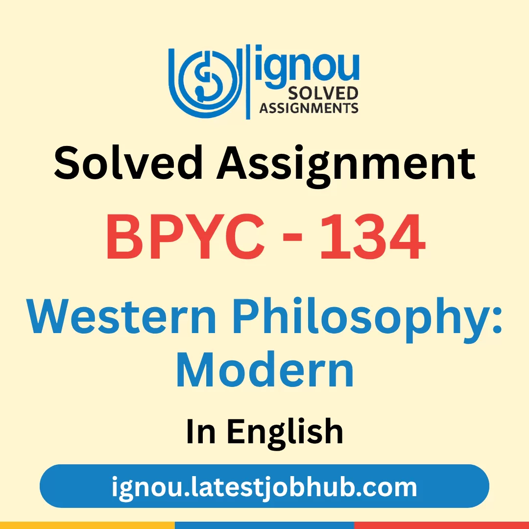 IGNOU BPYC-134 Solved Assignment 2026 PDF | Western Philosophy: Modern