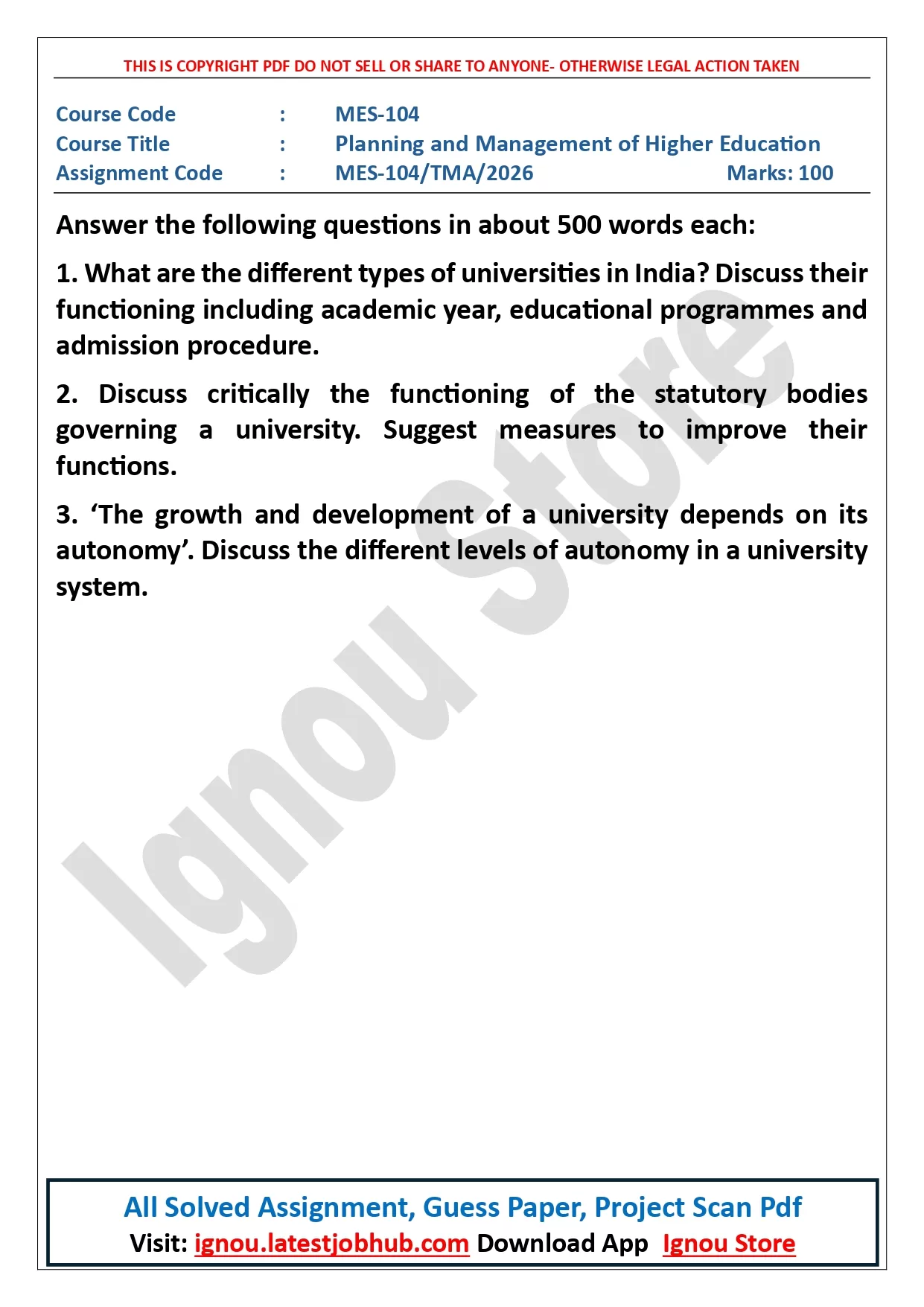 IGNOU MES-104 Solved Assignment 2025-26 PDF | Planning and Management of Higher Education