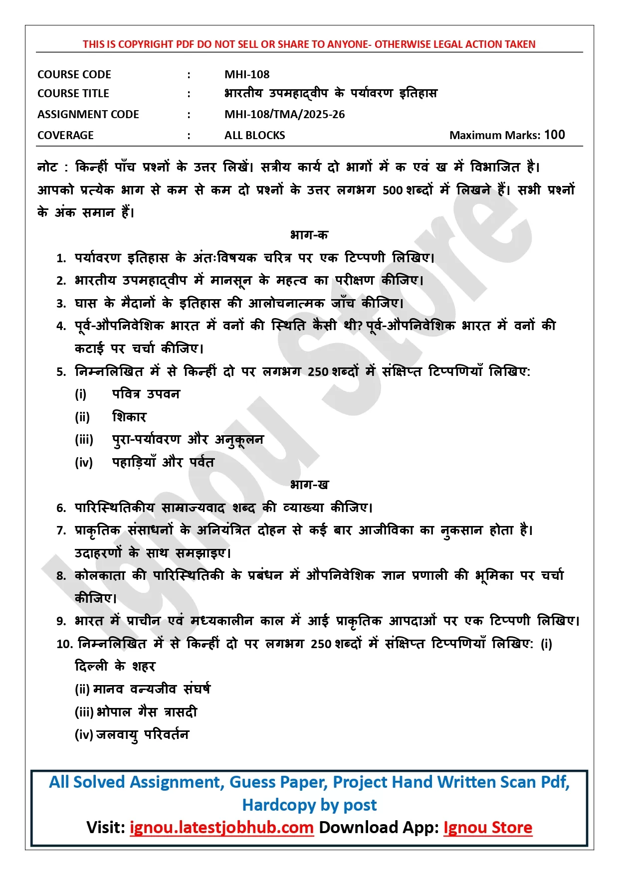 IGNOU MHI-108 Solved Assignment 2025-26 PDF | भारतीय उपमहाद्वीप के पर्यावरण इतिहास