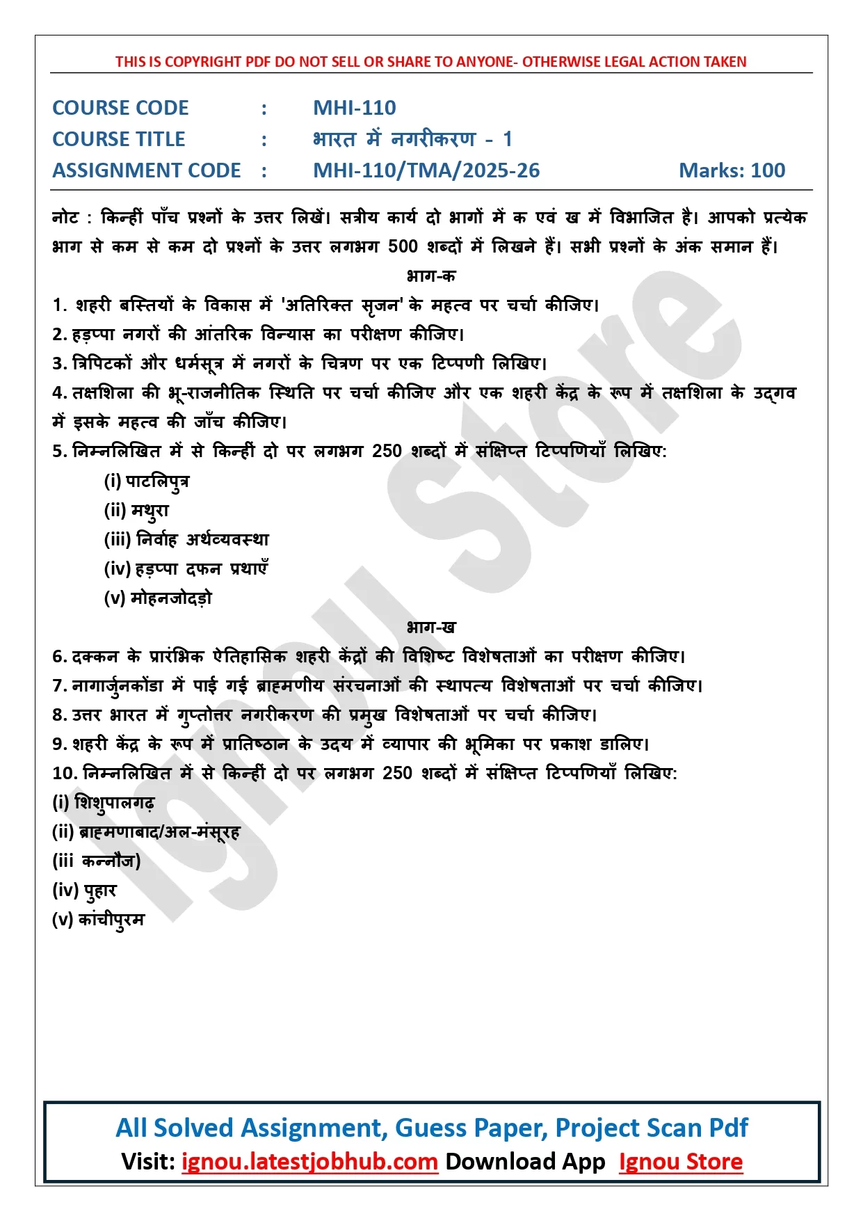 IGNOU MHI-110 Solved Assignment 2025-26 PDF | भारत में नगरीकरण – 1