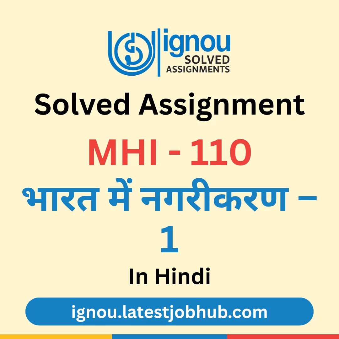 Are you looking for the IGNOU MHI-110 Solved Assignment 2025-26? You’re in the right place. This solved assignment is prepared according to the latest IGNOU syllabus for MHI-110: भारत में नगरीकरण – 1, helping students understand the concepts of भारत में नगरीकरण की प्रक्रिया, शहरी विकास, ऐतिहासिक परिप्रेक्ष्य और सामाजिक-आर्थिक प्रभाव with clear and exam-oriented answers. It is suitable for learners enrolled in the July 2025 and January 2026 sessions.