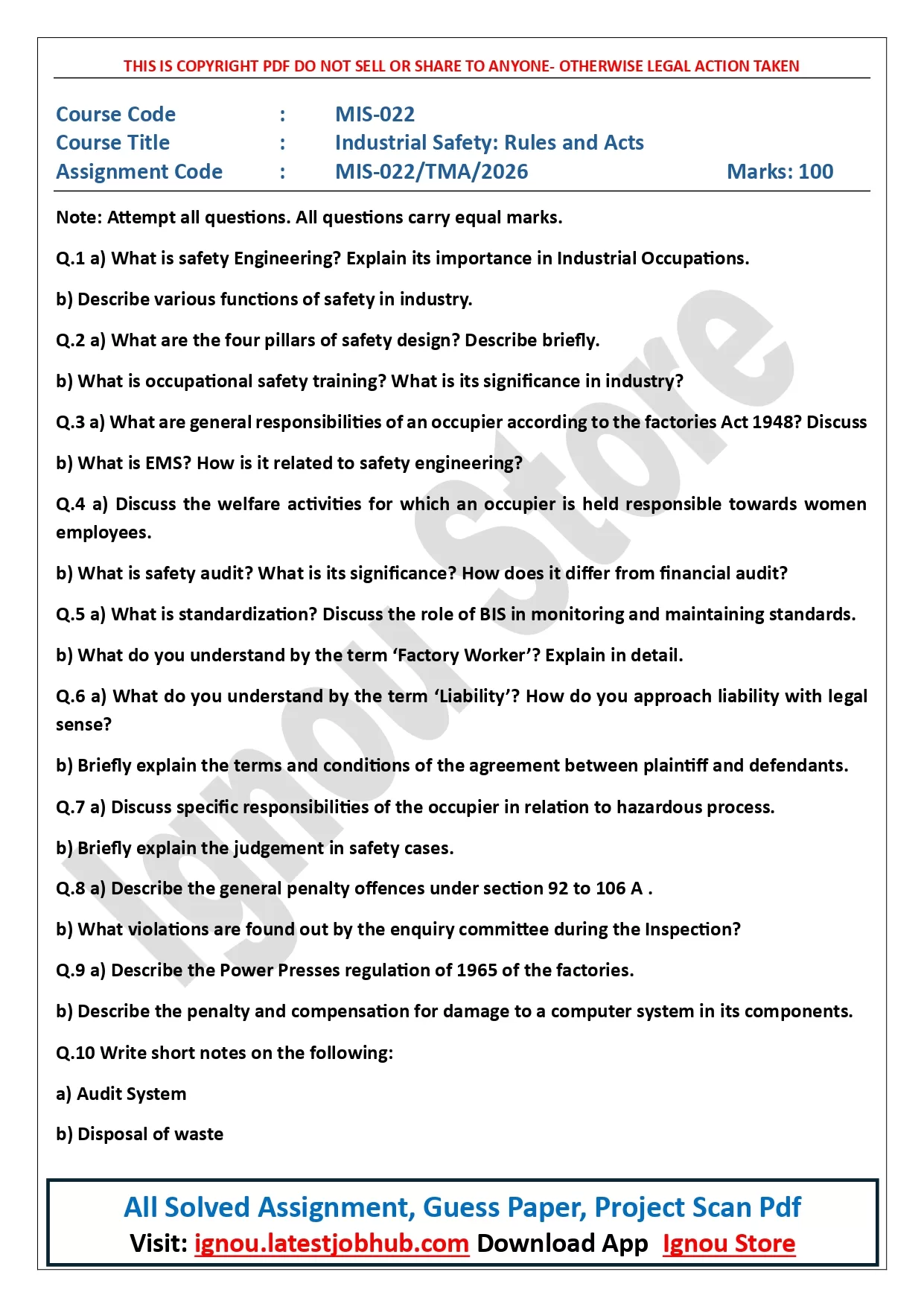 IGNOU MIS-022 Solved Assignment 2026 PDF | Industrial Safety: Rules and Acts
