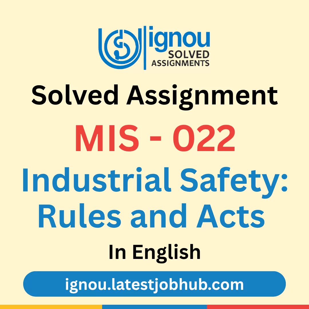 Are you looking for the IGNOU MIS-022 Solved Assignment 2026? You’re in the right place. This solved assignment is prepared according to the latest IGNOU syllabus for MIS-022: Industrial Safety: Rules and Acts, helping students understand the concepts of industrial safety regulations, legal provisions, safety standards, and workplace hazard management with clear and exam-oriented answers. It is suitable for learners enrolled in the January and July 2026 sessions.