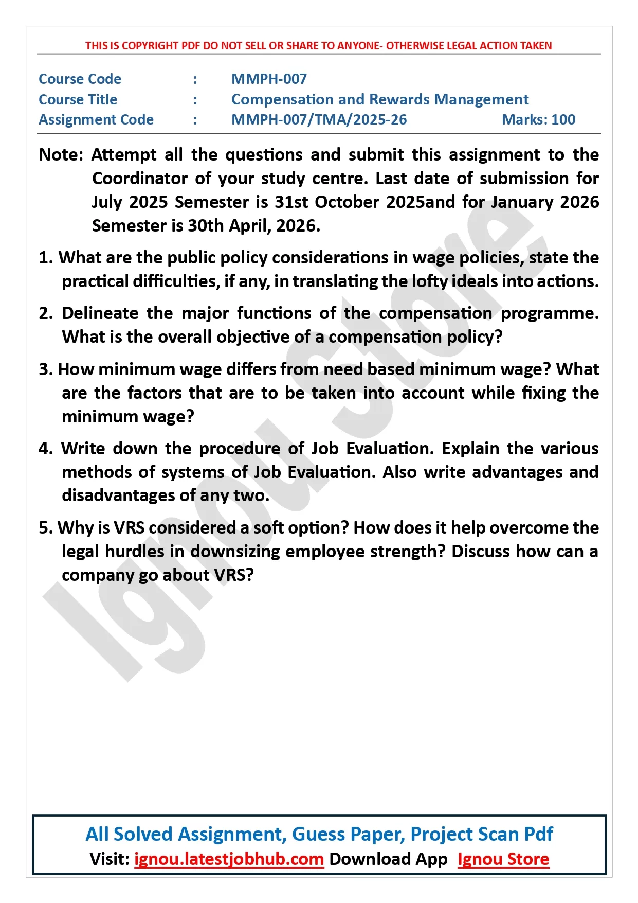 IGNOU MMPH-007 Solved Assignment 2025-26 PDF | Compensation and Rewards Management