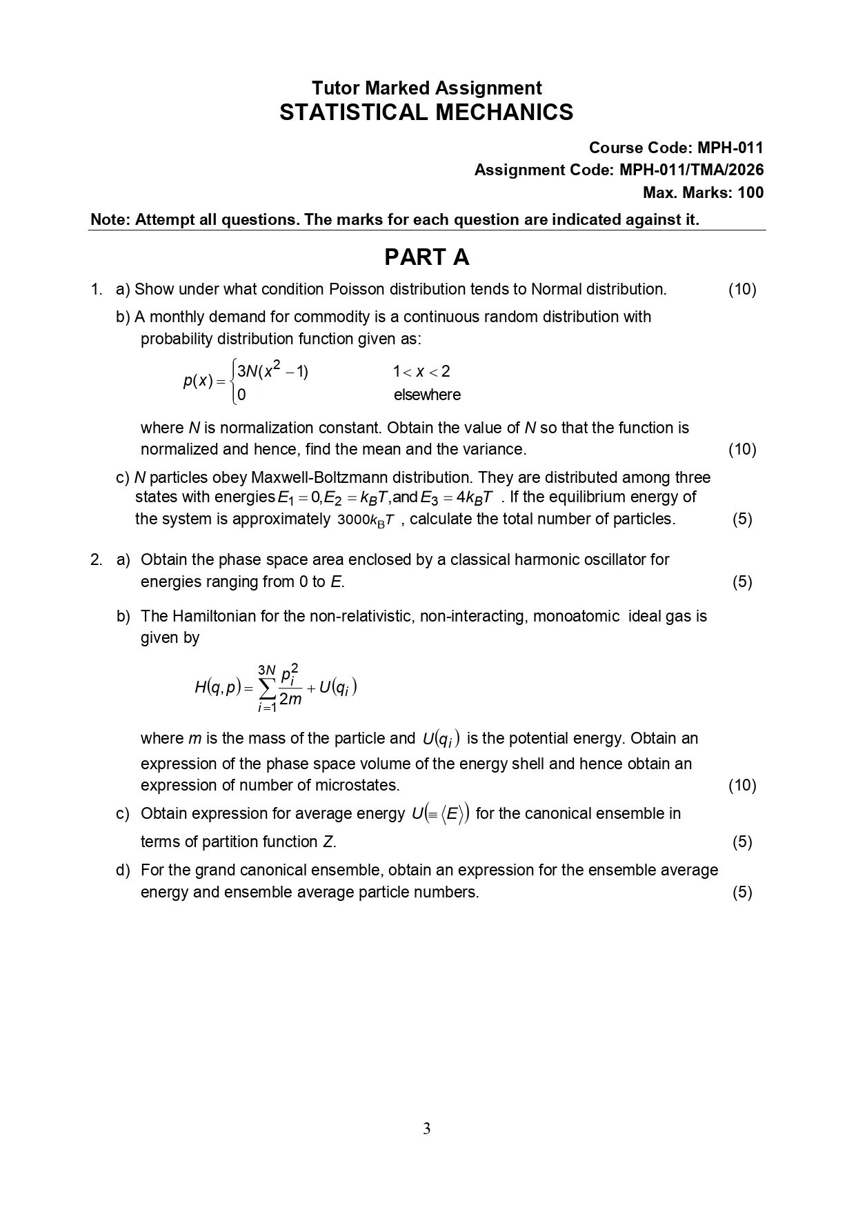 IGNOU MPH-011 Solved Assignment 2026 PDF | Statistical Mechanics