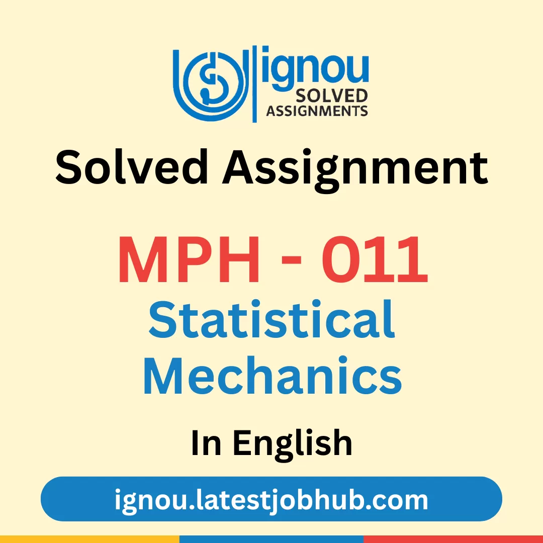 Are you looking for the IGNOU MPH-011 Solved Assignment 2026 English Medium? You’re in the right place. This solved assignment is prepared according to the latest IGNOU syllabus for MPH-011: Statistical Mechanics, helping students understand the concepts of thermodynamic systems, statistical distributions, entropy, partition functions, and microscopic behavior of matter with clear and exam-oriented answers. It is suitable for learners enrolled in the January and July 2026 sessions.