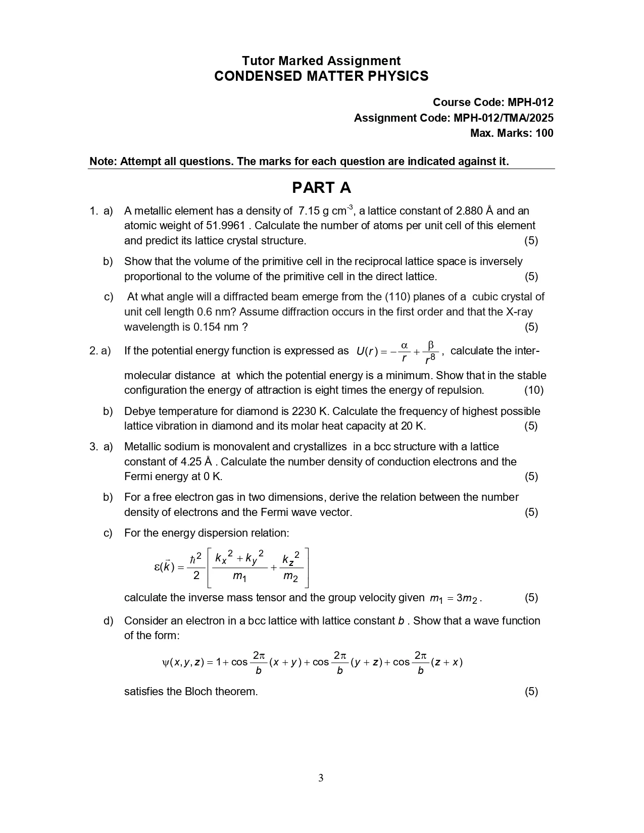IGNOU MPH-012 Solved Assignment 2025-26 PDF | Condensed Matter Physics