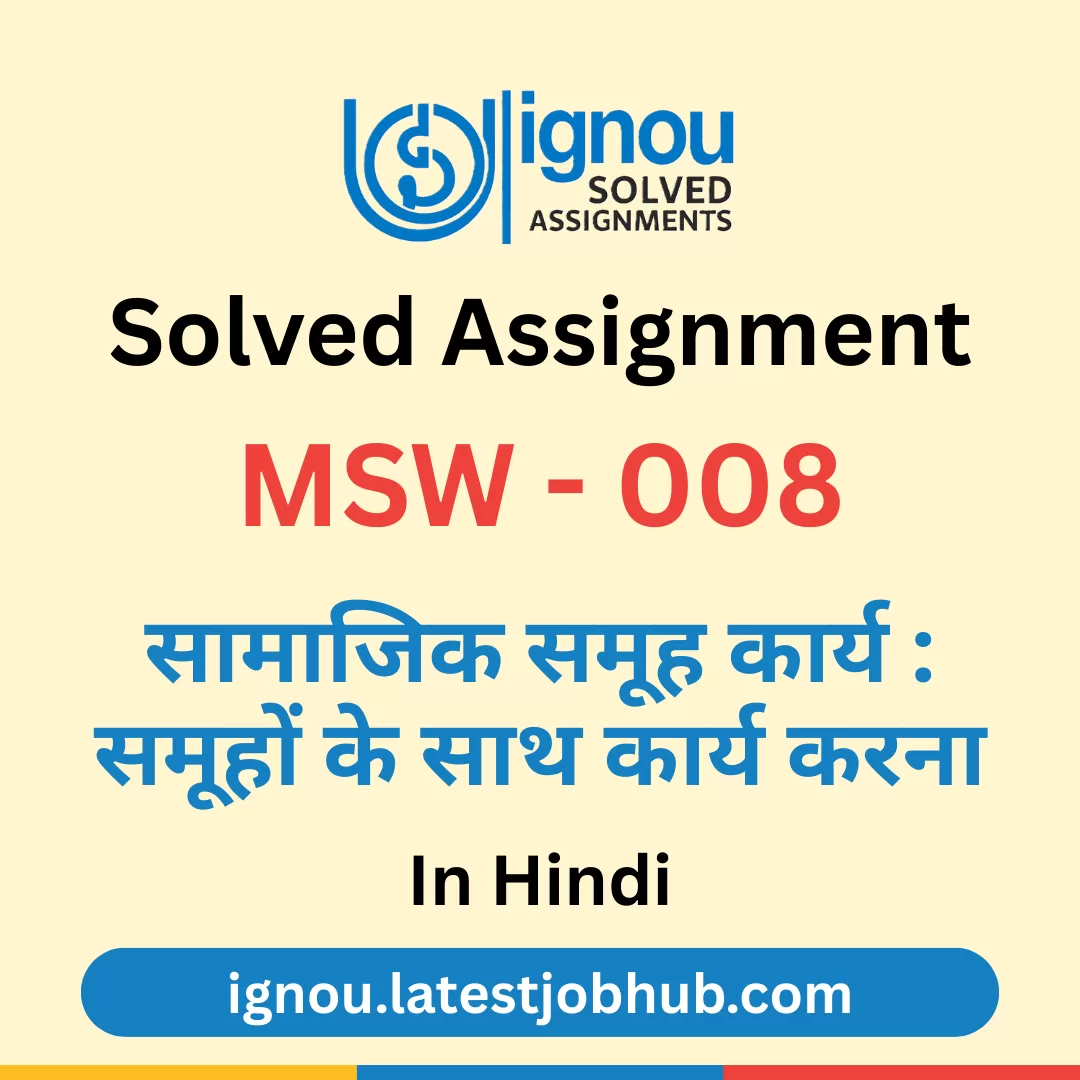Are you looking for the IGNOU MSW-008 Solved Assignment 2025-26? You’re in the right place. This solved assignment is prepared according to the latest IGNOU syllabus for MSW-008: सामाजिक समूह कार्य : समूहों के साथ कार्य करना, helping students understand the concepts of सामाजिक समूह कार्य, समूह प्रक्रियाएं, समूह गतिकी और उनके सामाजिक कार्य में व्यावहारिक अनुप्रयोग with clear and exam-oriented answers. It is suitable for learners enrolled in the July 2025 and January 2026 sessions.